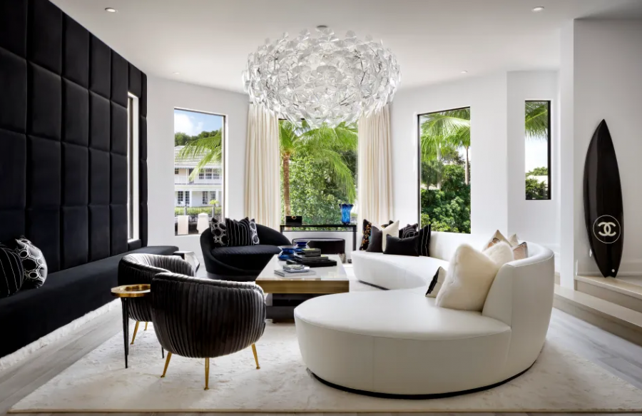 Pasuria është 10,500 metra katrorë dhe krenohet me kuvertën e dy varkave, me ujë që rrethon ishullin e komunitetit të mbyllur në Koloninë e Gjirit. Shtëpia ka gjithashtu nëntë banjo, një kuzhinë italiane dhe një suitë VIP.