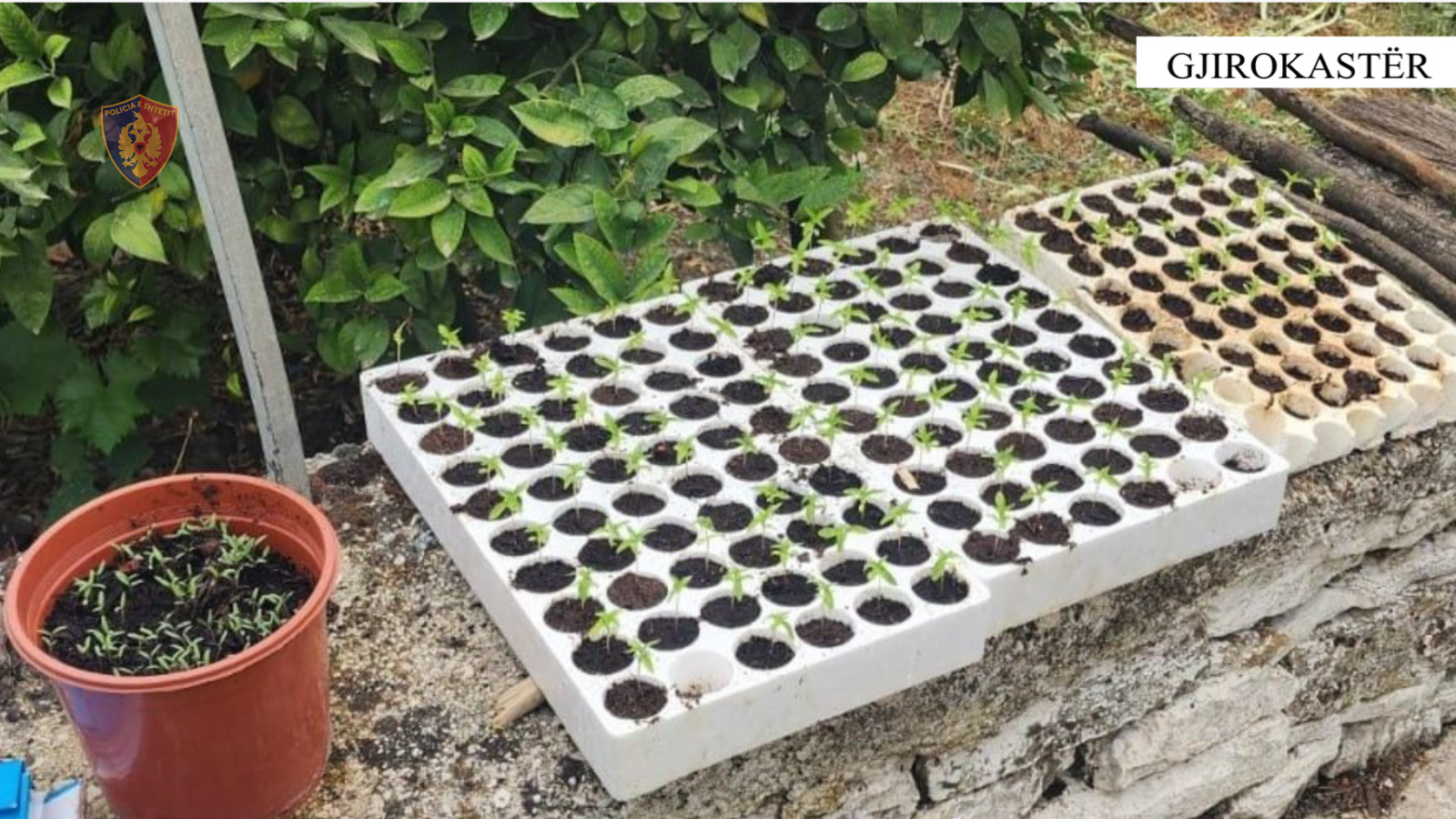 Policia thotë se u asgjësuan 128 fidanë të cilët ishin mbjellë në oborrin e banesës në Gjirokastër.