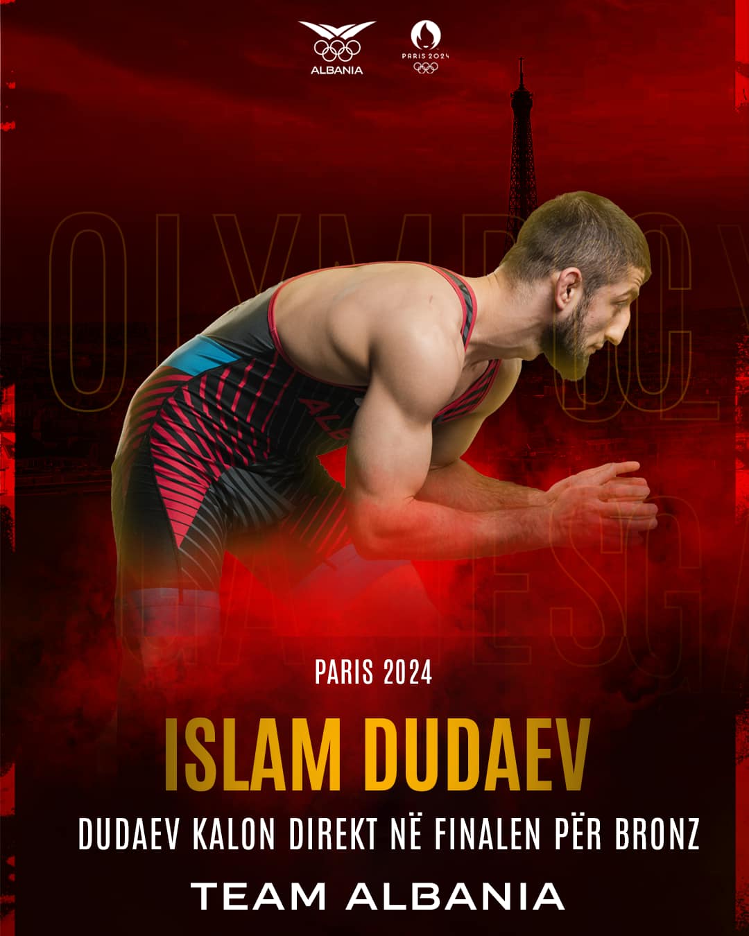 Në këtë mënyrë, Dudaev kalon direkt në finalen që do të zhvillohet për medaljen e bronzit. Dudaev garon në peshën 65kg në stilin e lirë.